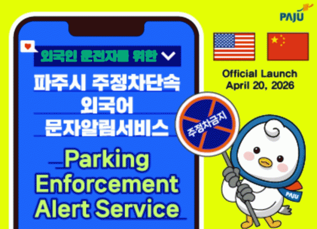 [»çȸ] ÆÄÁÖ½Ã, ¿Ü±¹ÀÎ ¿îÀüÀÚ ´ë»ó 'ÁÖÁ¤Â÷ ´Ü¼Ó ¿Ü±¹¾î ¹®ÀÚ ¾Ë¸²' ¼­ºñ½º ½ÃÇà |2026. 04.20
