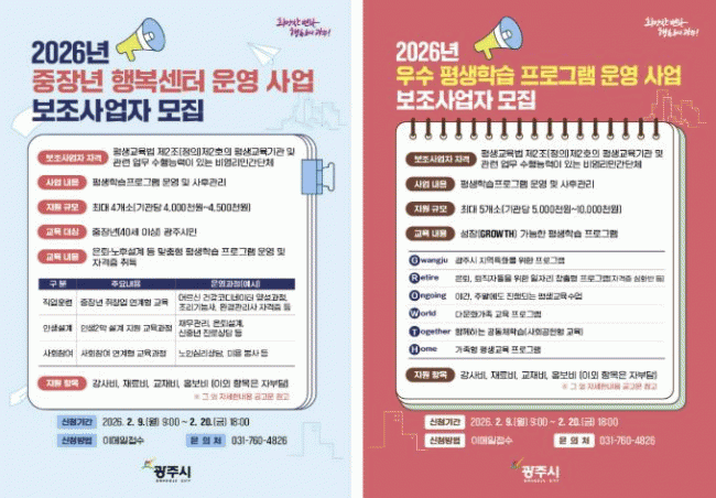 [»çȸ] ±¤ÁÖ½Ã, Æò»ýÇнÀ ÇÁ·Î±×·¥ ¼öÇà±â°ü °ø°³¸ðÁý |2026. 02.06