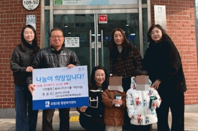 [NWS¹æ¼Û=Çѽ¸ñ ±âÀÚ]¼ö¿ø½Ã Àå¾È±¸ Á¶¿ø2µ¿¿¡ À§Ä¡ÇÑ ¹ãºñ´ÏŰÁÄð ¾î¸°ÀÌÁý¿¡¼­ ¿ø¾ÆµéÀÌ °í»ç¸®¼ÕÀ¸·Î ¸ð¾Æ ¸¶·ÃÇÑ ÀÌ¿ôµ½±â ¼º±Ý 40¸¸¿øÀ» µ¿ ÇàÁ¤º¹Áö¼¾ÅÍ¿¡ ±âÅ¹ÇØ Áö¿ª»çȸ¿¡ µû¶æÇÑ °¨µ¿À» ÀüÇß´Ù. °­¹Ì¿µ ¿øÀåÀº ¡°¾ÆÀ̵éÀÌ¡¦