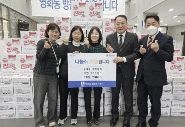 [NWS¹æ¼Û=Çѽ¸ñ ±âÀÚ]¼ö¿ø½Ã Àå¾È±¸ ¿µÈ­µ¿ÀÇ Áß½Ä´ç ºÏȸ¿ø°ú ÇÑ»ù¸¶Æ®°¡ ¼³ ¸íÀýÀ» ¸Â¾Æ Áö³­ 5ÀÏ ¿µÈ­µ¿ ÇàÁ¤º¹Áö¼¾ÅÍ¿¡ ¶ó¸é 200¹Ú½º¸¦ ±âºÎÇß´Ù. À̹ø¿¡ Àü´ÞµÈ ¶ó¸éÀº ¿µÈ­µ¿ ³» Ãë¾à°èÃþ °¡Á¤¿¡ Áö¿øµÉ ¿¹Á¤ÀÌ´Ù. ºÏȸ¿ø°ú ÇÑ»ù¡¦
