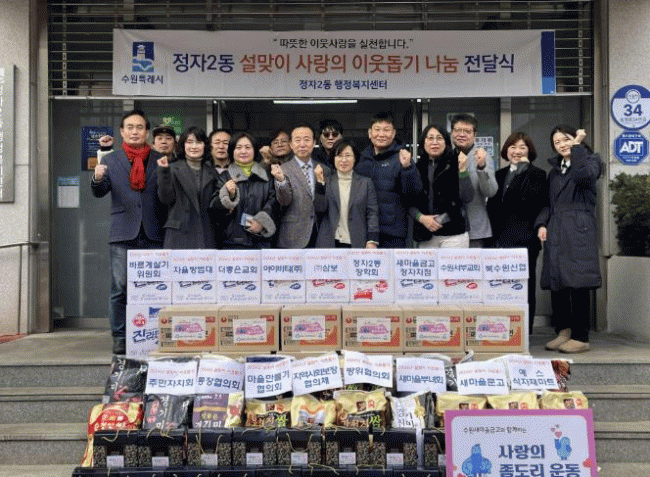 [NWS¹æ¼Û=Çѽ¸ñ ±âÀÚ]¼ö¿ø½Ã Àå¾È±¸ Á¤ÀÚ2µ¿Àº Áö³­ 5ÀÏ, ¹ÎÁ· °íÀ¯ÀÇ ¸íÀýÀÎ ¼³À» ¸Â¾Æ ÀÌ¿ôµ½±â ³ª´® Àü´Þ½ÄÀ» °¡Á³´Ù. À̳¯ Çà»ç¿¡´Â ºÏ¼ö¿ø½ÅÇù, »õ¸¶À»±Ý°í Á¤ÀÚÁöÁ¡, ¢ß»ïº¸, ¾ÆÀ̺ñƼ(ÁÖ)¿Í Á¤ÀÚ2µ¿ µ¿ ´ÜÀ§ 9°³ ´Üü µî 16°³ ±â¡¦