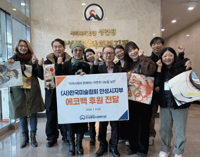 [»çȸ] ¾È¼ºÁ¾ÇÕ»çȸº¹Áö°ü, Çѱ¹¹Ì¼úÇùȸ ¾È¼ºÁöºÎ·ÎºÎÅÍ ¿¡ÄÚ¹é 100°³ ÈÄ¿ø ¹Þ¾Æ |2026. 01.13