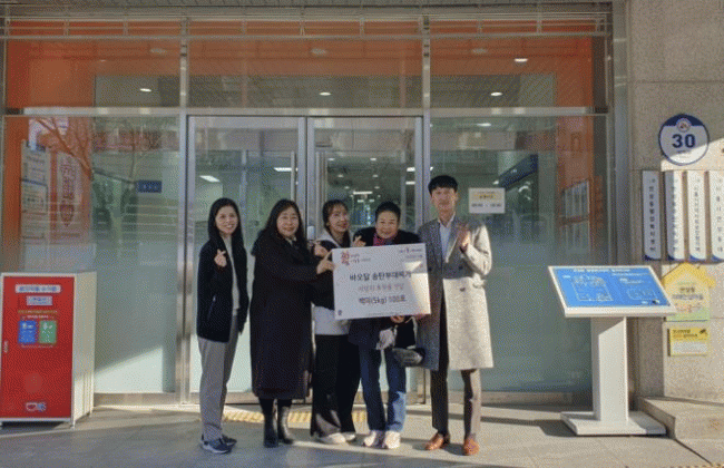 [NWS¹æ¼Û=Çѽ¸ñ ±âÀÚ]½ÃÈï½Ã ¿¬¼ºµ¿ ÇàÁ¤º¹Áö¼¾ÅÍ´Â Áö³­ 12¿ù 8ÀÏ ¹Ù¿À´Þ¼ÛźºÎ´ëÂî°³·ÎºÎÅÍ ¹é¹Ì 5kg 100Æ÷¸¦ Àü´Þ¹Þ¾Ò´Ù. ¹Ù¿À´Þ¼ÛźºÎ´ëÂî°³´Â Áö¿ª»çȸ¸¦ À§ÇÑ ÈÄ¿ø°ú ¼±ÇàÀ» ²ÙÁØÈ÷ º£Ç®°í ÀÖÀ¸¸ç, ½ÃÈï½Ò ÇÞÅä¹Ì¸¦ ³Î¸® ¾Ë¸®´Â ¡¦