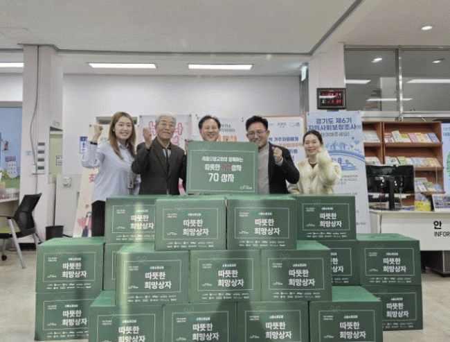 [NWS¹æ¼Û=Çѽ¸ñ ±âÀÚ]½ÃÈï½Ã ±ºÀÚµ¿¿¡ ÀÖ´Â ½ÃÈï¼Ò¸Á±³È¸°¡ ±¹Á¦±¸È£ NGO ¡®Èñ¸ÁÄ£±¸ ±â¾Æ´ëÃ¥¡¯¿Í ÇÔ²² Áö³­ 12¿ù 15ÀÏ ±ºÀÚµ¿ ÇàÁ¤º¹Áö¼¾ÅÍ¿¡ µû¶æÇÑ Èñ¸Á»óÀÚ 70»óÀÚ(700¸¸ ¿ø »ó´ç)¸¦ ±âºÎÇß´Ù. °¢ Èñ¸Á»óÀÚ¿¡´Â ÇÞ¹Ý, ¶ó¸é, ½Ä¿ëÀ¯¡¦