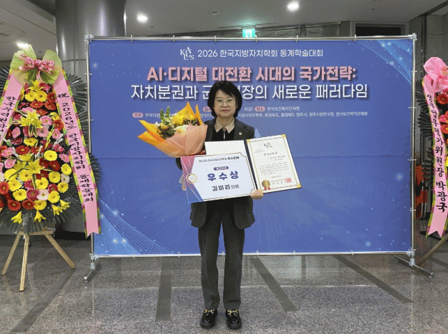 [NWS¹æ¼Û=Çѽ¸ñ ±âÀÚ]°æ±âµµÀÇȸ ±è¹Ì¸® ÀÇ¿ø(°³Çõ½Å´ç, ³²¾çÁÖ2)ÀÌ ´ëÇ¥¹ßÀÇÇÑ '°æ±âµµ ±èÀ幮ȭ Ȱ¼ºÈ­ ¹× Áö¿ø Á¶·Ê'°¡ Áö³­ 5ÀÏ ¡®Á¦22ȸ Çѱ¹Áö¹æÀÚÄ¡ÇÐȸ ¿ì¼öÁ¶·Ê ½Ã»ó½Ä¡¯¿¡¼­ °³Àκι® ¿ì¼ö»óÀ» ¼ö»óÇÏ´Â ¿µ¿¹¸¦ ¾È¾Ò´Ù. Çѱ¹¡¦