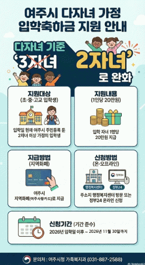 [»çȸ] ¿©ÁÖ½Ã, ´ÙÀÚ³à ±âÁØ 2ÀÚ³à·Î ¿ÏÈ­ 3¿ùºÎÅÍ ´ÙÀÚ³à °¡Á¤ ÀÔÇÐÃàÇÏ±Ý ½Åû |2026. 02.26
