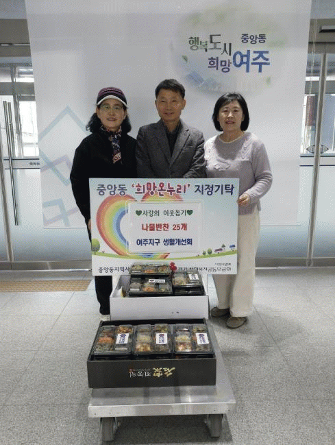 [NWS¹æ¼Û=Çѽ¸ñ ±âÀÚ]¿©ÁÖÁö±¸ »ýȰ°³¼±È¸´Â Áö³­ 3ÀÏ Á¤¿ù´ëº¸¸§À» ¸Â¾Æ Á¤¼ºÀÌ ´ã±ä ³ª¹°¹ÝÂù°ú ¿À°î¹ä 25¼¼Æ®¸¦ Áß¾Óµ¿ÇàÁ¤º¹Áö¼¾ÅÍ¿¡ ±âŹÇß´Ù. Á¤¿ù´ëº¸¸§ÀÇ ÀüÅë À½½ÄÀÎ ¿À°î¹ä°ú ³ª¹°¹ÝÂùÀ¸·Î ±¸¼ºµÈ À̹ø ³ª´®Àº Áö¿ª ÁֹεéÀÌ¡¦
