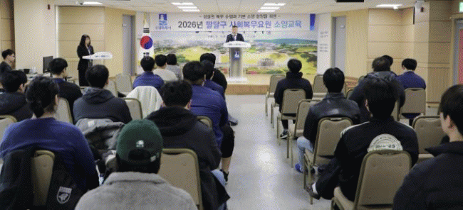 [NWS¹æ¼Û=Çѽ¸ñ ±âÀÚ]¼ö¿ø½Ã ÆÈ´Þ±¸´Â Áö³­ 5ÀÏ ÆÈ´Þ±¸Ã» ´ëȸÀǽǿ¡¼­ »çȸº¹¹«¿ä¿ø Àü¿øÀ» ´ë»óÀ¸·Î 2026³â »ó¹Ý±â ¼Ò¾ç±³À°À» ½Ç½ÃÇß´Ù. À̹ø ±³À°Àº ÃÖ±Ù °³Á¤µÈ ¹ý·ÉÀ» Æ÷ÇÔÇÑ º¹¹« °ü¸® Àü¹Ý¿¡ ´ëÇÑ ÀÌÇØ¸¦ ³ôÀÌ´Â ÇÑÆí, »çȸ ÃÊ¡¦