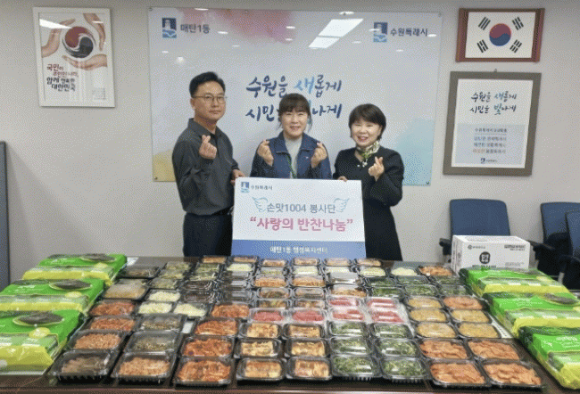 [NWS¹æ¼Û=Çѽ¸ñ ±âÀÚ]¼ö¿ø½Ã ¿µÅ뱸 ¸Åź1µ¿Àº Áö³­ 20ÀÏ ¡®¼Õ¸À1004 ºÀ»ç´Ü¡¯ÀÌ ±ÕÇü ÀâÈù ½Ä»ç¸¦ ì°Ü µå½Ã±â ¾î·Á¿î Àú¼Òµæ Ȧ¸ö ¾î¸£½ÅÀ» À§ÇÑ ¹ÝÂù ³ª´®À» ÁøÇàÇß´Ù°í ¹àÇû´Ù. ¼Õ¸À1004 ºÀ»ç´ÜÀº ¸Åź1µ¿°ú Àα٠Áö¿ª ÁֹΠµî ´Ù¾ç¡¦