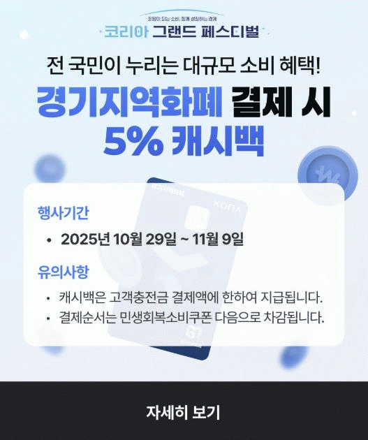 [»çȸ] µ¿µÎõ½Ã, 'ÄÚ¸®¾Æ ±×·£µå Æä½ºÆ¼¹ú' ±â°£ µ¿µÎõ»ç¶ûÄ«µå 5% ij½Ã¹é Áö±Þ |2025. 10.29