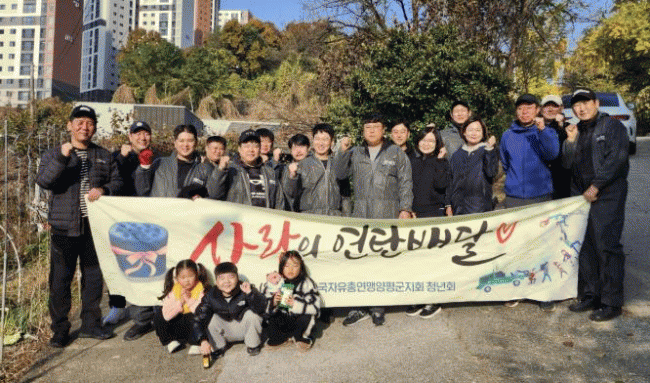 [NWS¹æ¼Û=Çѽ¸ñ ±âÀÚ]¾çÆò±ºÀº Áö³­ 9ÀÏ, Çѱ¹ÀÚÀ¯ÃÑ¿¬¸Í ¾çÆò±ºÁöȸ û³âȸ°¡ ¾çÆòÀ¾°ú °³±º¸éÀÇ Àú¼Òµæ °¡Á¤ 2°¡±¸¿¡ °¢ 500À徿 ¿¬ÅºÀ» Àü´ÞÇß´Ù°í ¹àÇû´Ù. À̳¯ ºÀ»çȰµ¿¿¡´Â û³âȸ¿ø 20¿© ¸íÀÌ Âü¿©ÇØ ½Ò½ÒÇÑ ³¯¾¾¿¡µµ À̸¥ ¾ÆÄ§¡¦