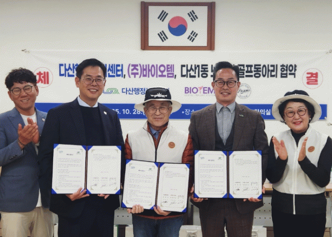[NWS¹æ¼Û=Çѽ¸ñ ±âÀÚ]³²¾çÁֽô 28ÀÏ ¿ÀÈÄ 4½Ã ´Ù»êÇàÁ¤º¹Áö¼¾ÅÍ ¼ÒȸÀǽǿ¡¼­ (ÁÖ)¹ÙÀÌ¿ÀÅÛ, ´Ù»ê1µ¿ ³ëÀÎȸ °ñÇÁµ¿¾Æ¸®¿Í ¾î¸£½Å º¹Áö ÁõÁø°ú Áö¿ª»çȸ ³ª´®¹®È­ È®»êÀ» À§ÇÑ ´Üüº¹ Àü´Þ Çù¾àÀ» ü°áÇß´Ù. À̹ø Çù¾àÀº Áö¿ª ±â¾÷ÀÇ¡¦