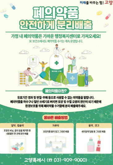 [NWS¹æ¼Û=Çѽ¸ñ ±âÀÚ]°í¾çƯ·Ê½Ã´Â °¡Á¤¿¡ ¹æÄ¡µÈ ÆóÀǾàǰÀÇ ¾ÈÀüÇÑ È¸¼ö¸¦ À§ÇØ °ü³» 44°³ µ¿ ÇàÁ¤º¹Áö¼¾ÅÍ¿¡ ÆóÀǾàǰ ¼ö°ÅÇÔÀ» ½Å±Ô ¼³Ä¡Çß´Ù°í 7ÀÏ ¹àÇû´Ù. ¼ö°ÅÇÔ ¼³Ä¡´Â ÆóÀǾàǰÀÇ ¹«´Ü ¹èÃâ·Î ÀÎÇÑ È¯°æ¿À¿° ¹× ÀÎü °Ç°­ ÇÇÇØ¡¦