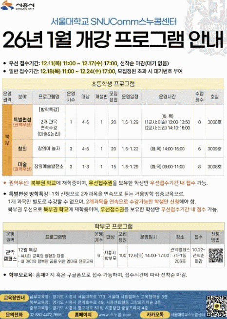 [»çȸ] ½ÃÈï½Ã ³²ºÎ±Ç 5°³ µµ¼­°ü, 2026³â °Ü¿ïµ¶¼­±³½Ç¤ý°Ü¿ï¹æÇÐ ÇÁ·Î±×·¥ ¿î¿µ |2025. 12.09