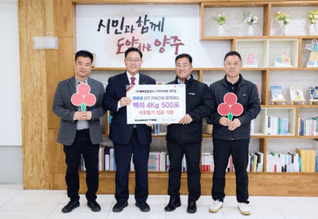 [NWS¹æ¼Û=Çѽ¸ñ ±âÀÚ]¾çÁֽð¡ Áö³­ 14ÀÏ ½ÃÀå½Ç¿¡¼­ ¢ßºÏºÎÁ¾ÇÕ»ó»ç ŸÀ̾îÇÁ·Î·ÎºÎÅÍ ÀÌ¿ôµ½±â ¼ºÇ°À¸·Î ¹é¹Ì 4kg 500Æ÷(800¸¸ ¿ø »ó´ç)¸¦ ±âŹ¹Þ¾Ò´Ù. À̹ø ±âŹÀº ±ÝȣŸÀÌ¾î ½ÅÁ¦Ç° Ãâ½Ã¸¦ ±â³äÇØ Áö¿ø¹ÞÀº ¹°Ç°À» Áö¿ªÀÇ ¾î·Á¿î ¡¦