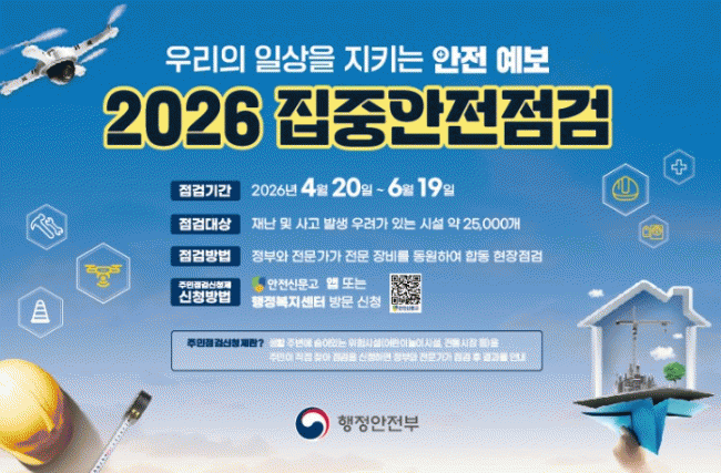 [NWS¹æ¼Û=Çѽ¸ñ ±âÀÚ]Çϳ²½Ã´Â °¢Á¾ Àç³­°ú ¾ÈÀü»ç°í¸¦ »çÀü¿¡ ¿¹¹æÇϱâ À§ÇØ ¿À´Â 4¿ù 20ÀϺÎÅÍ 6¿ù 19ÀϱîÁö °ü³» Àç³­Ãë¾à½Ã¼³À» ´ë»óÀ¸·Î '2026³â ÁýÁß¾ÈÀüÁ¡°Ë'À» ½Ç½ÃÇÑ´Ù. À̹ø Á¡°ËÀº ÀüÅë½ÃÀå, ¿ä¾ç½Ã¼³, ³ë·¡¹æ¡¤PC¹æ µî ´ÙÁß¡¦