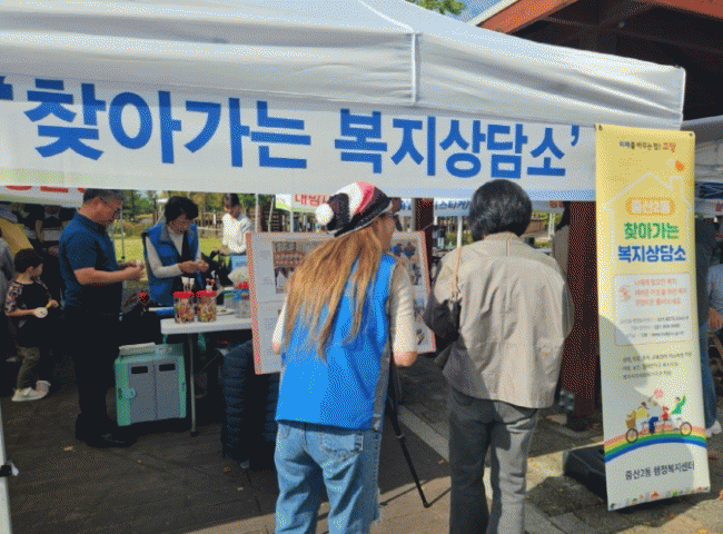 [NWS¹æ¼Û=Çѽ¸ñ ±âÀÚ]°í¾çƯ·Ê½Ã Àϻ굿±¸ Áß»ê2µ¿Àº Áö³­ 25ÀÏ ¸ð´ç°ø¿ø¿¡¼­ ¿­¸° ¡®2025 ¿Í±Û¿Í±Û ¸¶À»ÃàÁ¦¡¯ÇöÀå¿¡¼­ ã¾Æ°¡´Â º¹Áö»ó´ã¼Ò ¹× º¹Áö»ç°¢Áö´ë ¹ß±¼ Ä·ÆäÀÎ ºÎ½º¸¦ ¿î¿µÇß´Ù. À̹ø »ó´ã¼Ò´Â Áß»ê2µ¿ Áö¿ª»çȸº¸ÀåÇùÀÇü¡¦
