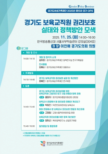 [»çȸ] °æ±âµµ¿©¼º°¡Á·Àç´Ü, ¡®º¸À°±³Á÷¿ø ±Ç¸®º¸È£ ½ÇÅÂÁ¶»ç¡¯ °á°ú¹ßÇ¥ Åä·Ðȸ °³ÃÖ |2025. 11.24
