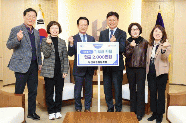 [NWS¹æ¼Û=Çѽ¸ñ ±âÀÚ]ºÎõ½Ã´Â Áö³­ 18ÀÏ ºÎõ»õ±æÇùµ¿Á¶ÇÕ(´ëÇ¥ ±è´ë¼º)ÀÌ Áö¿ª ³» Ãë¾à°èÃþ Áö¿øÀ» À§ÇØ ¼º±Ý 2,000¸¸ ¿øÀ» ±âŹÇß´Ù°í 19ÀÏ ¹àÇû´Ù. ±âŹµÈ ¼º±ÝÀº ¹ü¹Úµ¿, ¿Á±æµ¿, ±«¾Èµ¿, ¿ª°î3µ¿ Áö¿ª»çȸº¸ÀåÇùÀÇü¿¡ °¢ 500¸¸ ¡¦
