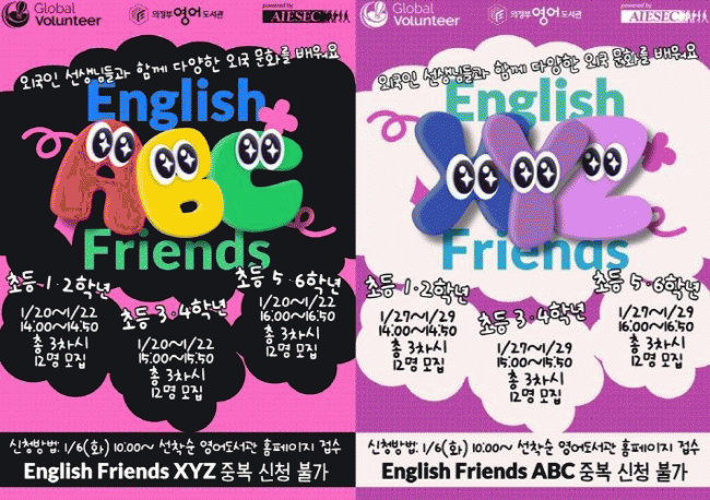 [NWS¹æ¼Û=Çѽ¸ñ ±âÀÚ]ÀÇÁ¤ºÎ¿µ¾îµµ¼­°üÀº 2026³â 1¿ù 20ÀϺÎÅÍ 29ÀϱîÁö ¼­°­´ëÇб³ AIESEC(¾ÆÀ̼½: UN °øÀÎ ±¹Á¦¸®´õ½ÊÇлýÇùȸ)°ú ÇÔ²² ±Û·Î¹ú ¹®È­Ã¼Çè ¿µ¾î±³À° ÇÁ·Î±×·¥ ¡®English Friends¡¯¸¦ ¿î¿µÇÑ´Ù. À̹ø ÇÁ·Î±×·¥Àº 2025³âÀÇ¡¦