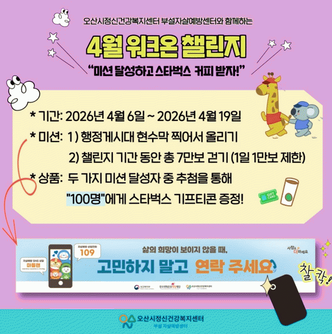 [»çȸ] ¿À»ê½ÃÁ¤½Å°Ç°­º¹Áö¼¾ÅÍ, '»ý¸í»ç¶û ¿öÅ©¿Â 縰Áö' ¿î¿µ |2026. 03.27