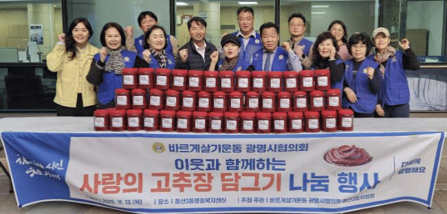 [»çȸ] ±¤¸í½Ã ±¤¸í7µ¿ »õ¸¶À»ÁöµµÀÚÇùÀÇȸ¡¤ºÎ³àȸ, '»ç¶ûÀÇ ±èÀå±èÄ¡ ´ã±×±â' Çà»ç·Î µû¶æÇÑ °Ü¿ï Áغñ |2025. 11.14