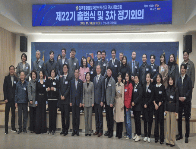 [NWS¹æ¼Û=Çѽ¸ñ ±âÀÚ]¹ÎÁÖÆòÈ­ÅëÀÏÀÚ¹®È¸ÀÇ ¾È¼º½ÃÇùÀÇȸ´Â 18ÀÏ ¿ÀÀü, ¾È¼º½Ãû ´ëȸÀǽǿ¡¼­ ÀÚ¹®À§¿ø 39¸íÀÌ Âü¼®ÇÑ °¡¿îµ¥ 'Á¦22±â ¹ÎÁÖÆòÈ­ÅëÀÏÀÚ¹®È¸ÀÇ Ãâ¹ü½Ä ¹× 2025³â 3ºÐ±â Á¤±âȸÀÇ'¸¦ °³ÃÖÇß´Ù. À̳¯ Ãâ¹ü½Ä¿¡¼­´Â Á¦22±â ¡¦