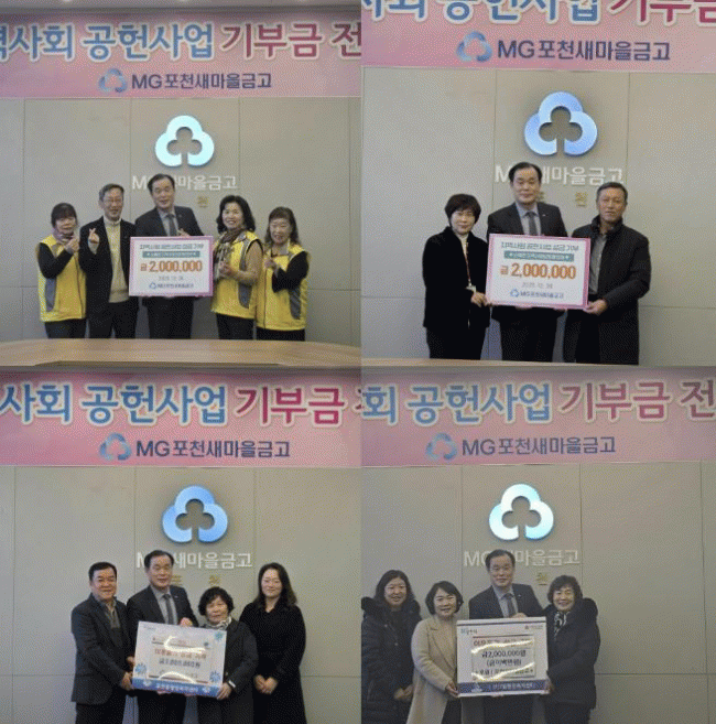 [»çȸ] ¿¥Áö(MG)Æ÷õ»õ¸¶À»±Ý°í, °ü³» 4°³ À¾¸éµ¿Áö¿ª»çȸº¸ÀåÇùÀÇü¿¡ »ç¶ûÀÇ Á»µµ¸® ¼º±Ý 800¸¸ ¿ø ±âŹ |2025. 12.31