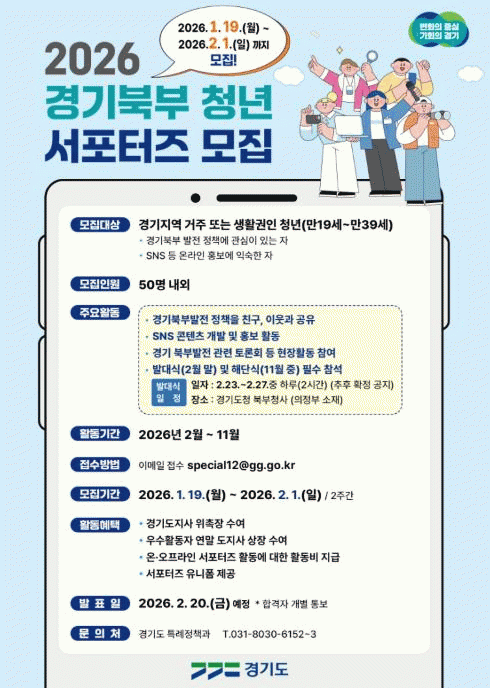 [»çȸ] °æ±âµµ, 2026³â °æ±âºÏºÎ û³â ¼­Æ÷ÅÍÁî 2±â ¸ðÁý |2026. 01.19