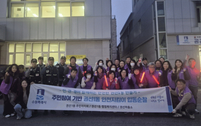 [NWS¹æ¼Û=Çѽ¸ñ ±âÀÚ]¼ö¿ø½Ã ±Ç¼±±¸ ±Ç¼±1µ¿ ÁÖ¹ÎÀÚġȸ´Â Áö³­ 31ÀÏ Àú³á, Áö¿ª Áֹεé°ú ÇÔ²² ±Ç¼±1µ¿ ÀÏ´ë¿¡¼­ ¹Î¡¤°ü¡¤°æ ÇÕµ¿¼øÂûÀ» ½Ç½ÃÇß´Ù. ÀÌ ³¯Àº °ü³» ¹üÁË ¿¹¹æ ¼øÂû°ú °¡·Î ȯ°æ Á¤ºñ Ȱµ¿À» ½Ç½ÃÇß´Ù. ¡®±Ç¼±1µ¿ ¾ÈÀüÁö¡¦