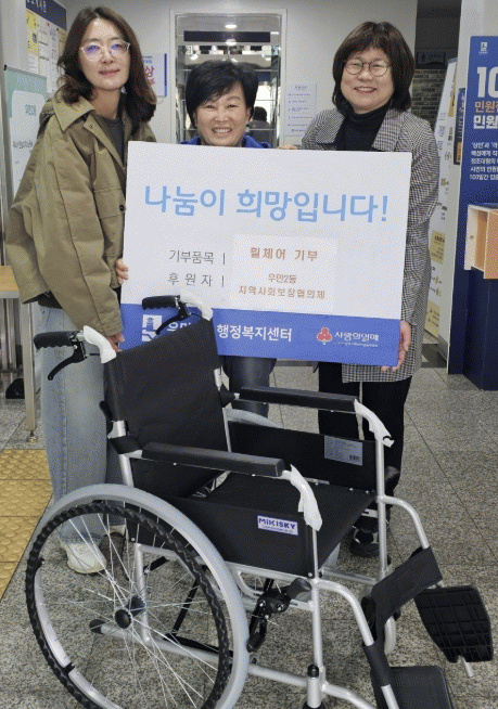 [NWS¹æ¼Û=Çѽ¸ñ ±âÀÚ]¼ö¿ø½Ã ÆÈ´Þ±¸ ¿ì¸¸2µ¿ Áö¿ª»çȸº¸ÀåÇùÀÇü´Â Áö¿ª ³» À̵¿ÀÌ ºÒÆíÇÑ ÁֹεéÀ» Áö¿øÇϱâ À§ÇØ ÈÙü¾î 1´ë¸¦ ¿ì¸¸2µ¿ ÇàÁ¤º¹Áö¼¾ÅÍ¿¡ ±âºÎÇß´Ù°í ¹àÇû´Ù. À̹ø ±âºÎ´Â ¿ì¸¸2µ¿¿¡¼­ ÃßÁø ÁßÀÎ ¡®ÈÙü¾î ¹«·á´ë¿© »ç¾÷¡¦