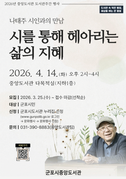 [»çȸ] ±ºÆ÷½ÃÁß¾Óµµ¼­°ü, ³ªÅÂÁÖ ½ÃÀΰú ÇÔ²²ÇÏ´Â '½ÃÀÇ ½Ã°£' ¸¶·Ã |2026. 04.07