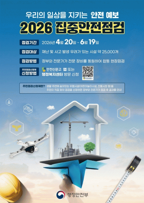 [NWS¹æ¼Û=Çѽ¸ñ ±âÀÚ]ÆÄÁֽô Àç³­ ¹× ¾ÈÀü»ç°í¸¦ »çÀü¿¡ ¿¹¹æÇÏ°í ½Ã¹ÎµéÀÌ ¾È½ÉÇÏ°í »ýȰÇÒ ¼ö ÀÖ´Â ¾ÈÀüÇÑ È¯°æÀ» Á¶¼ºÇϱâ À§ÇØ ¤¤¤Æ¤¯ÁýÁß¾ÈÀüÁ¡°Ë¡¯À» 4¿ù 20ÀϺÎÅÍ 6¿ù 19ÀϱîÁö ½Ç½ÃÇÑ´Ù. À̹ø ÁýÁß¾ÈÀüÁ¡°ËÀº ÀüÅë½ÃÀå, ´ÙÁß¡¦