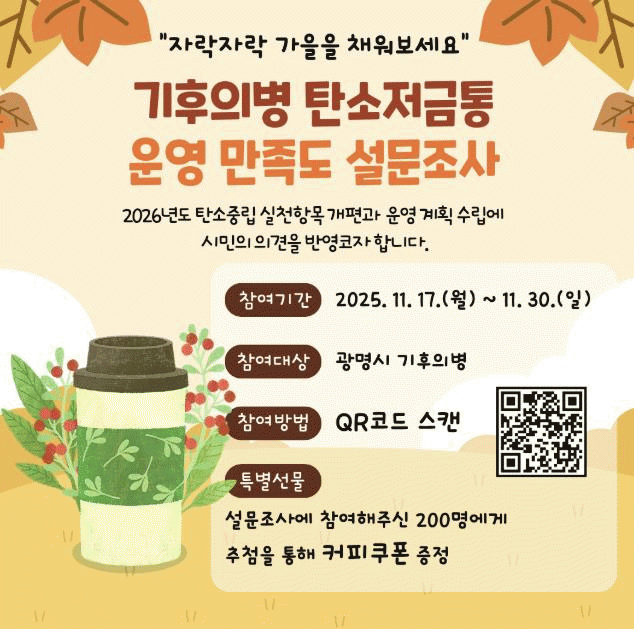 [NWS¹æ¼Û=Çѽ¸ñ ±âÀÚ]±¤¸í½Ã°¡ ¿À´Â 17ÀϺÎÅÍ 30ÀϱîÁö ±âÈÄÀǺ´ ź¼ÒÀú±ÝÅëÀÇ ¾÷±×·¹À̵带 À§ÇÑ ½Ã¹Î ÀǰßÀ» ¸ðÀº´Ù. ±âÈÄÀǺ´ ź¼ÒÀú±ÝÅë ¿î¿µ ¸¸Á·µµ Á¶»ç´Â ³»³âµµ ź¼ÒÁ߸³ ½Çõ Ç׸ñ °³Æí°ú ¿î¿µ ¹æ¾È ¸¶·Ã¿¡ ½Ã¹Î ÀǰßÀ» Àû±Ø ¡¦