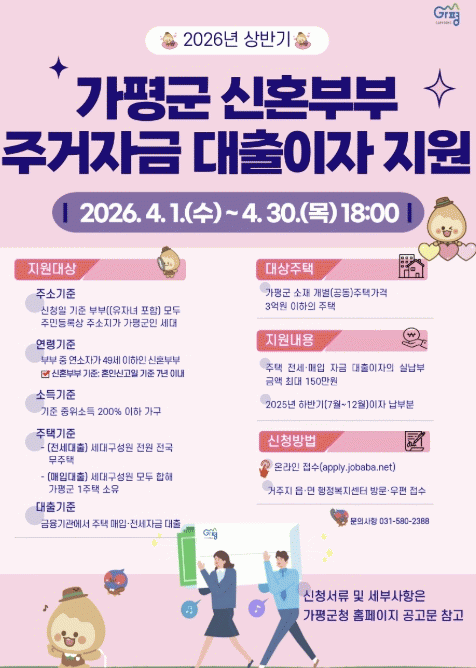 [»çȸ] °¡Æò±º, »ó¹Ý±â ½ÅÈ¥ºÎºÎ ÁÖ°ÅÀÚ±Ý ´ëÃâÀÌÀÚ Áö¿ø |2026. 03.27