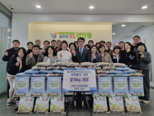 [NWS¹æ¼Û=Çѽ¸ñ ±âÀÚ]±¤Áֽà °æ¾Èµ¿ ÁÖ¹ÎÀÚÄ¡À§¿øÈ¸´Â Áö³­ 25ÀÏ °æ¾Èµ¿ Áö¿ª»çȸº¸ÀåÇùÀÇü¿¡ ¾î·Á¿î ÀÌ¿ôÀ» À§ÇØ ¹é¹Ì 36Æ÷(10§¸)¸¦ Àü´ÞÇß´Ù. À̹ø¿¡ ±âŹµÈ ¹°Ç°Àº Áö³­ 2¿ù 25ÀÏ ¿­¸° ÁÖ¹ÎÀÚÄ¡À§¿øÀå ÀÌ¡¤ÃëÀӽĿ¡¼­ ÃàÇÏ È­È¯ ´ë¡¦