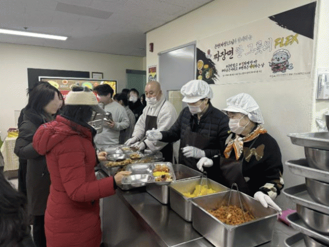 [NWS¹æ¼Û=Çѽ¸ñ ±âÀÚ]³²¾çÁֽô Áö³­ 28ÀÏ ³²¾çÁÖ½ÃÀå¾ÖÀκ¹Áö°ü¿¡¼­ õ¿î½º´Ô°ú ÇÔ²² Â¥Àå¸é ³ª´® Çà»ç¸¦ ¿­°í ÀÌ¿ëÀÚ 150¸í¿¡°Ô µû¶æÇÑ Á¡½É ½Ä»ç¸¦ Á¦°øÇß´Ù°í ¹àÇû´Ù. À̹ø Çà»ç´Â ÀÌ¿ôÀ» À§ÇÑ ½Ä»ç ³ª´®À» ½ÇõÇϰí, Áö¿ª»çȸ ³»¡¦
