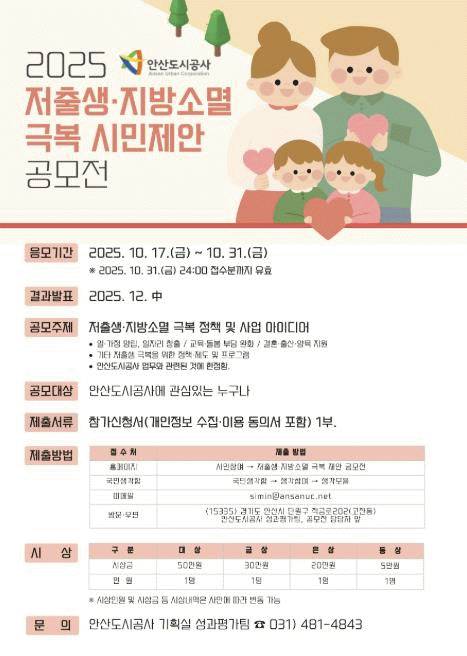 [»çȸ] ¾È»êµµ½Ã°ø»ç, ÀúÃâ»ý¡¤Áö¹æ¼Ò¸ê ±Øº¹ ½Ã¹ÎÁ¦¾È °ø¸ð |2025. 10.22