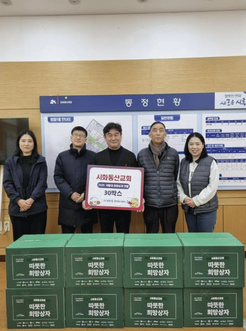 [NWS¹æ¼Û=Çѽ¸ñ ±âÀÚ]½ÃÈï½Ã Á¤¿Õ1µ¿ ÇàÁ¤º¹Áö¼¾ÅÍ¿¡ Áö³­ 12¿ù 30ÀÏ ½ÃÈ­µ¿»ê±³È¸°¡ ¹æ¹®ÇØ °ü³» ¾î·Á¿î ÀÌ¿ôÀ» µ½±â À§ÇØ ¡®Èñ¸Á»óÀÚ¡¯ 30°³¸¦ Àü´ÞÇß´Ù. ½ÃÈ­µ¿»ê±³È¸´Â ±×µ¿¾È Áö¿ª»çȸ¸¦ À§ÇÑ ´Ù¾çÇÑ ³ª´® Ȱµ¿À» ²ÙÁØÈ÷ ½ÇõÇϸ硦
