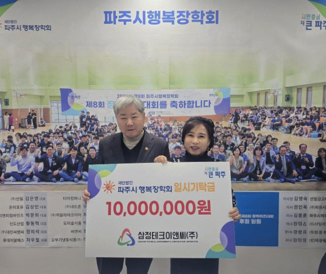 [NWS¹æ¼Û=Çѽ¸ñ ±âÀÚ]ÆÄÁֽô (Àç)ÆÄÁÖ½ÃÇູÀåÇÐȸ°¡ »ïÁ¤Å×Å©À̾ؾ¾¢ß·ÎºÎÅÍ ÀϽñâŹ±Ý 1õ¸¸ ¿øÀ» Àü´Þ¹Þ¾Ò´Ù°í ¹àÇû´Ù. À̹ø ±âʱÝÀº Áö¿ªÀÇ ¹Ì·¡ ÀÎÀ縦 ¾ç¼ºÇϰí Áö¿ª»çȸ¿ÍÀÇ »ó»ýÀ» ½ÇõÇϱâ À§ÇØ ¸¶·ÃµÈ °ÍÀ¸·Î, Àü´Þ½Ä¿¡´Â¡¦