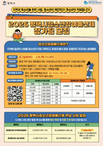 [»çȸ] 2026 ÆòÅýà û¼Ò³âÂü¿©¿¹»êÁ¦ »ç¾÷ ¿î¿µ Âü°¡ÆÀ ¸ðÁý |2026. 02.26