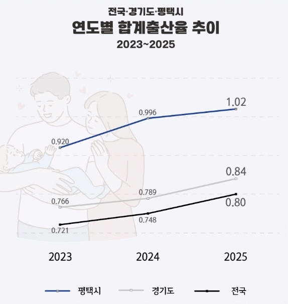 [NWS¹æ¼Û=Çѽ¸ñ ±âÀÚ]ÆòÅýÃÀÇ ÇÕ°èÃâ»êÀ²ÀÌ 1.02¸¦ ±â·ÏÇϸç 2³â ¿¬¼Ó »ó½Â¼¼¸¦ À̾´Ù. ±¹°¡µ¥ÀÌÅÍó°¡ ¹ßÇ¥ÇÑ 2025³â ÀáÁ¤ ÇÕ°èÃâ»êÀ²¿¡ µû¸£¸é ÆòÅýô 2024³â 0.996¿¡¼­ 2025³â 1.02·Î »ó½ÂÇÏ¸ç ´Ù½Ã 1.0¸íÀ» ³Ñ¾î¼¹´Ù. 2023³â¡¦