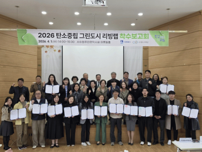 [NWS¹æ¼Û=Çѽ¸ñ ±âÀÚ]¼ö¿øÆ¯·Ê½Ã¿Í ¼ö¿øµµ½ÃÀç´ÜÀÌ 1ÀÏ ¼­¼ö¿øÁÖ¹ÎÆíÀͽü³¿¡¼­ ¡®2026³â ź¼ÒÁ߸³ ±×¸°µµ½Ã ¸®ºù·¦ Âø¼öº¸°íȸ¡¯¸¦ ¿­°í, ź¼ÒÁ߸³ ±×¸°µµ½Ã ¸®ºù·¦ »ç¾÷ÀÇ ÃßÁø ¹æÇâÀ» ¾Ë·È´Ù. ±Ç¼±±¸ °í»öµ¿ ÀÏ¿ø¿¡¼­ ÁøÇàµÇ°í Àִ¡¦
