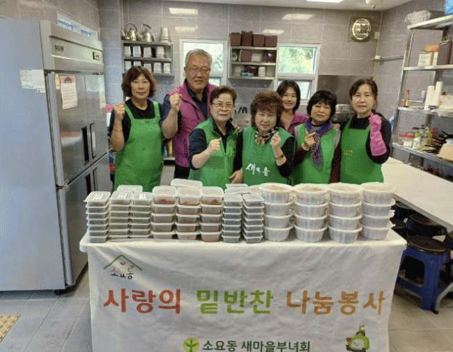 [NWS¹æ¼Û=Çѽ¸ñ ±âÀÚ]µ¿µÎõ½Ã ¼Ò¿äµ¿ »õ¸¶À»ºÎ³àȸ´Â Áö³­ 21ÀÏ °ü³» Ãë¾à°èÃþ 26°¡±¸¿¡ Á÷Á¢ Á¶¸®ÇÑ ¹Ø¹ÝÂùÀ» Àü´ÞÇÏ´Â ¡®»ç¶ûÀÇ ¹Ø¹ÝÂù ³ª´®¡¯ Çà»ç¸¦ ÁøÇàÇß´Ù. À̳¯ ºÎ³àȸ¿øµéÀº ´ßµµ¸®ÅÁ, ±èÄ¡ººÀ½, °í±¸¸¶Áٱ⺺À½, ÄáÀÚ¹Ý, ¹Ì¡¦