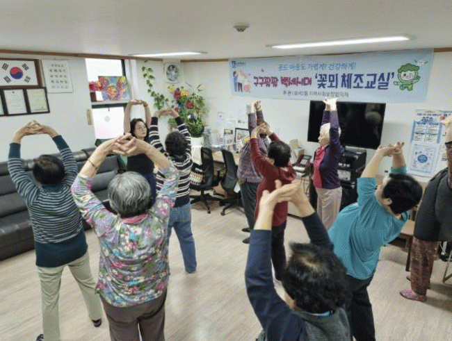[NWS¹æ¼Û=Çѽ¸ñ ±âÀÚ]¼ö¿ø½Ã ÆÈ´Þ±¸ È­¼­2µ¿ Áö¿ª»çȸº¸ÀåÇùÀÇü´Â Áö³­ 21ÀÏ, ¾î¸£½ÅµéÀÇ È°±âÂù ³ëÈÄ¿Í °Ç°­ÁõÁøÀ» À§ÇØ ±¸±¸ÆÈÆÈ ¹é¼¼½Ã´ë ¡®²É¸þ üÁ¶±³½Ç¡¯À» È­¼­ÁÖ°ø4´ÜÁö¾ÆÆÄÆ® °æ·Î´ç¿¡¼­ °³ÃÖÇß´Ù. ²É¸þ üÁ¶±³½ÇÀº °í·ÉÈ­ »ç¡¦