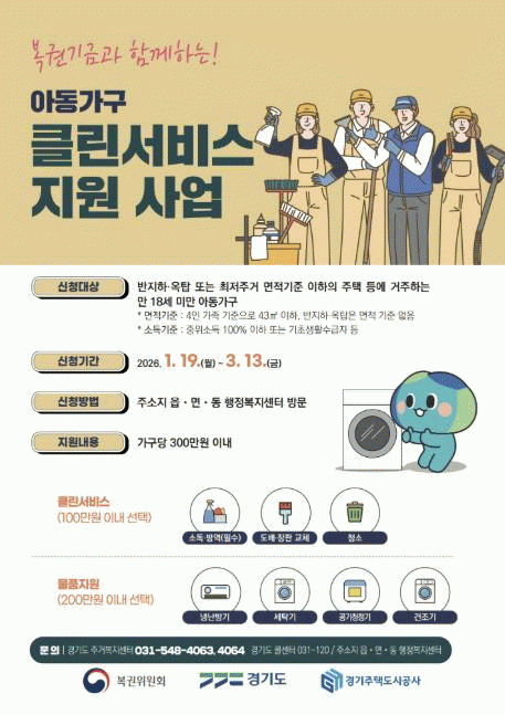 [NWS¹æ¼Û=Çѽ¸ñ ±âÀÚ]½ÃÈï½Ã´Â ¿­¾ÇÇÑ ÁÖ°Åȯ°æ¿¡ óÇÑ ¾Æµ¿°¡±¸ÀÇ ÁÖ°Åȯ°æ °³¼±°ú »ýȰ ¾ÈÁ¤À» À§ÇØ ¡®2026³â ¾Æµ¿°¡±¸ Ŭ¸°¼­ºñ½º Áö¿ø »ç¾÷¡¯À» º»°Ý ÃßÁøÇÑ´Ù. ¾Æµ¿Áְźó°ï°¡±¸ Ŭ¸°¼­ºñ½º´Â Àú¼Òµæ ¾Æµ¿°¡±¸ÀÇ ÁÖ°Åȯ°æ°ú À§»ý ¡¦