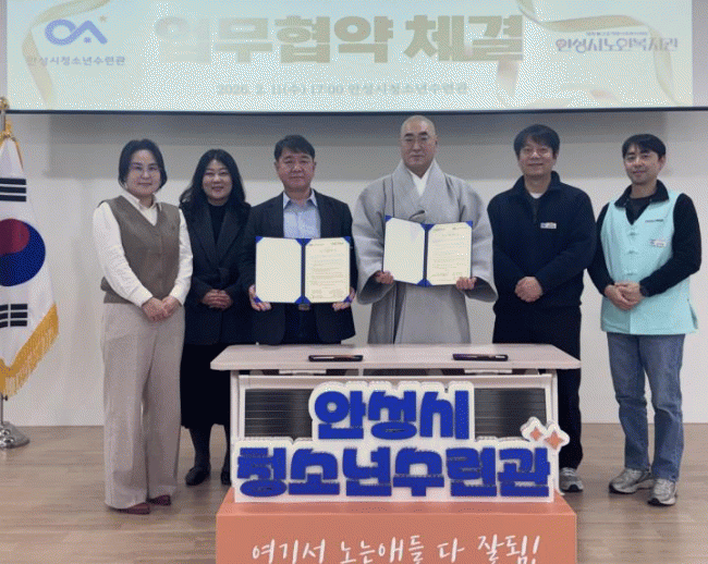 [NWS¹æ¼Û=Çѽ¸ñ ±âÀÚ]¾È¼º½Ãû¼Ò³â¼ö·Ã°ü°ú ¾È¼º½Ã³ëÀκ¹Áö°üÀº Áö¿ª»çȸ ³» ¼¼´ë °£ ÅëÇÕ°ú ¹®È­ ÇâÀ¯¸¦ À§ÇØ Áö³­ 11ÀÏ »óÈ£ Çù·Â ¾÷¹«Çù¾àÀ» ü°áÇß´Ù°í ¹àÇû´Ù. À̹ø Çù¾àÀº ¾È¼º½ÃÀÇ ±Þ°ÝÇÑ Àα¸ Áõ°¡¿Í °í·ÉÈ­¿¡ ´ëÀÀÇØ û¼Ò³â°ú¡¦
