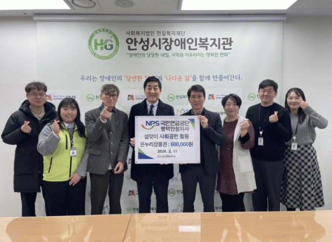 [»çȸ] ±¹¹Î¿¬±Ý°ø´Ü ÆòÅþȼºÁö»ç, ¾È¼º½ÃÀå¾ÖÀκ¹Áö°ü¿¡ ¿Â´©¸®»óǰ±Ç 60¸¸¿ø ±âŹ |2026. 02.13