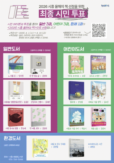 [NWS¹æ¼Û=Çѽ¸ñ ±âÀÚ]½ÃÈï½Ã´Â ¡®2026 ½ÃÈï ¿ÃÇØÀÇ Ã¥¡¯ ¼±Á¤À» À§ÇÑ ½Ã¹Î ÅõÇ¥¸¦ 4¿ù 1ÀϺÎÅÍ 10ÀϱîÁö 10Àϰ£ ¿Â¿ÀÇÁ¶óÀÎÀ¸·Î ÁøÇàÇÑ´Ù. ¡®½ÃÈï ¿ÃÇØÀÇ Ã¥¡¯Àº ½Ã¹ÎÀÌ ÇÔ²² ÀÐ°í °ø°¨ÇÒ Ã¥À» ¼±Á¤ÇÏ´Â ¹ü½Ã¹Î µ¶¼­¿îµ¿À¸·Î, µµ¼­ Ãßõ¡¦