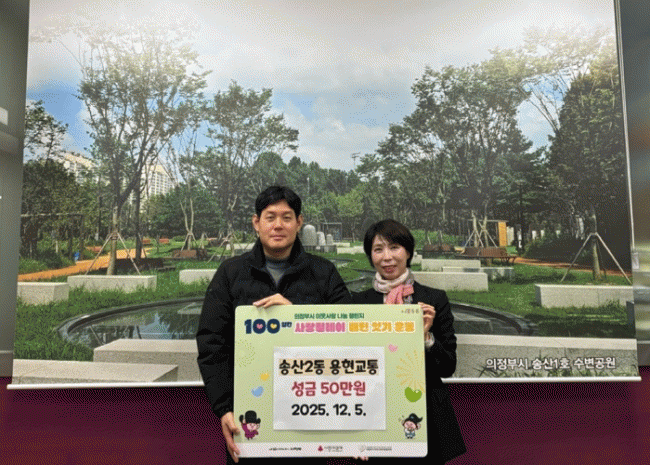 [»çȸ] ÀÇÁ¤ºÎ½Ã °í»êµ¿, ¢ß¿ëÇö±³Åë ¼º±Ý 50¸¸ ¿ø ±âºÎ·Î 100Àϰ£ »ç¶û¸±·¹ÀÌ Âü¿© |2025. 12.08